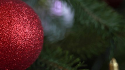 Festive Baubles Hanging On Twigs With Red Background Videos