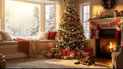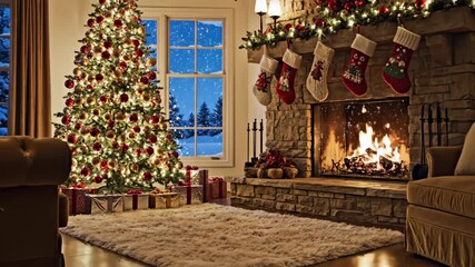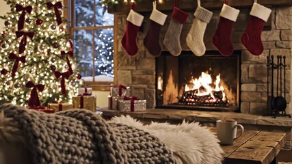 Festive Christmas Eve With Tree And Stockings By A Window Videos