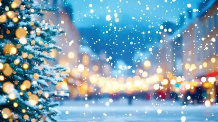 Festive Christmas Tree With Twinkling Lights And Falling Snowflakes Videos