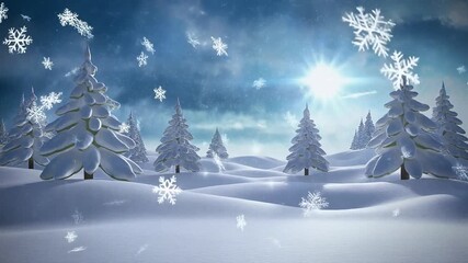 Festive Christmas Trees With Falling Snowflakes Videos