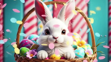 Festive Easter Bunny And Painted Eggs Falling Pattern Videos