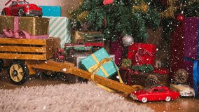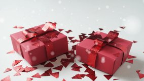 Festive Snowfall With Floating Gift Boxes On Black Videos