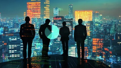 Financial Data Analysis Projected Over Urban Cityscape Videos