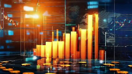Financial Data Analysis With Bar Graph And World Map Background Videos