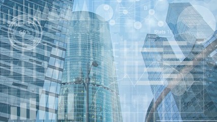 Financial Data Analytics Overlaid On Cityscape Background Videos
