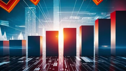 Financial Data Analytics Projection On Urban Backdrop Videos