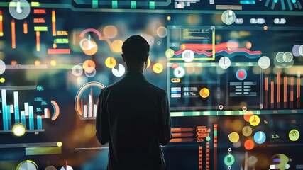 Financial Data Animation Displayed Against Skyscraper Background Videos