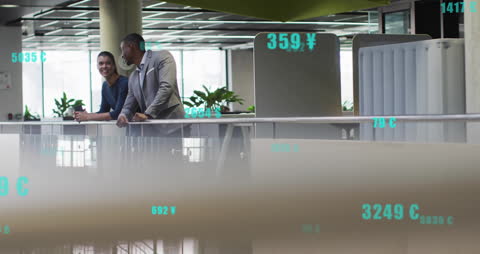 Financial Data Animation Over Empty Office Scene Videos