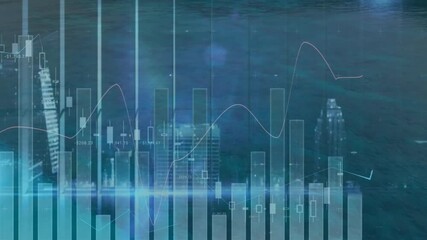 Financial Data Animation Overlay On Modern Cityscape Videos