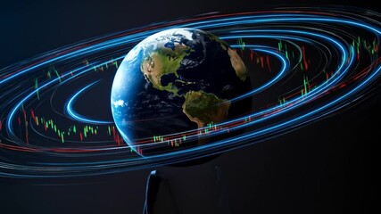 Financial Data Globe With Dynamic Graph Overlay Videos