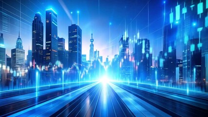 Financial Data Overlay On Urban Cityscape Background Videos