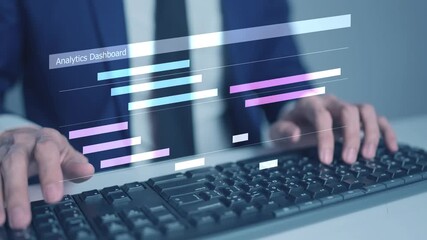 Financial Data Overlaying Team Collaborating In Modern Office Videos