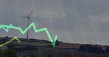 Financial Data Processing Animation With Wind Turbine Landscape Videos