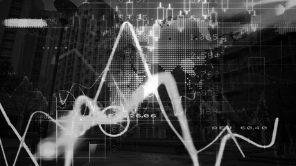 Financial Data Processing Over Urban Cityscape Background Videos