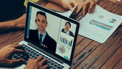 Financial Data Processing Overlay On Video Call Meeting Videos