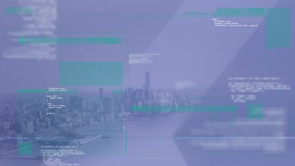 Financial Data Processing Overlaying Modern Cityscape Videos