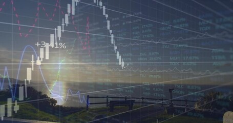 Financial Data Visualization Over Scenic Landscape Videos