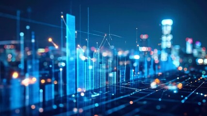 Financial Data Visualization Overlay On City Background Videos