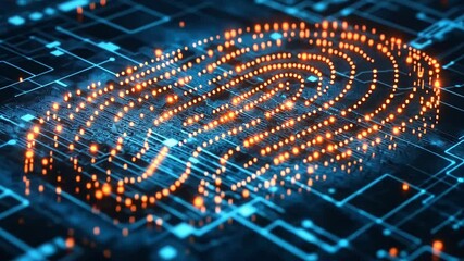 Fingerprint Scan With Digital Code On Orange Grid Background Videos
