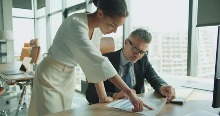 Focused Business Colleagues Reviewing Documents In Office Videos