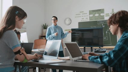 Focused Child Learning Computer Coding In Classroom Videos
