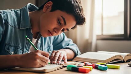 Focused Student Studying Writing Notes In Quiet Room Videos