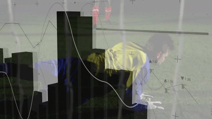 Football Player In Motion With Digital Data Overlay On Field Videos