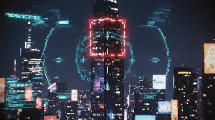 Future Cityscape With Digital Data Elements Overlaid Videos