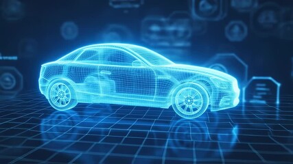 Futuristic 3d Car Model With Data Visualization Grid Videos