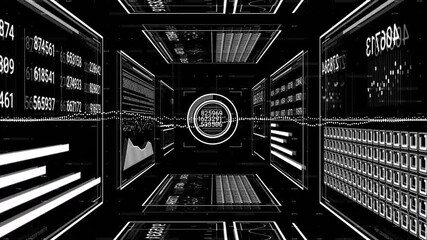 Futuristic 3d Grid Corridor With Floating Digits Videos