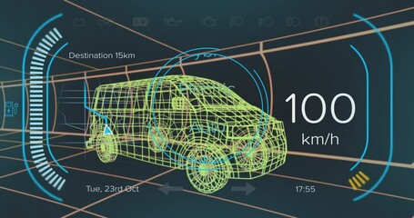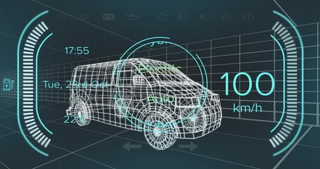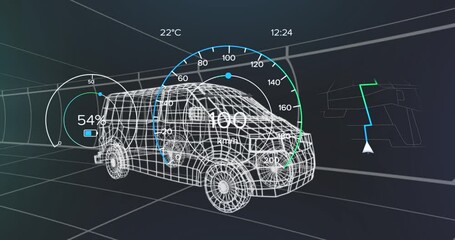 Futuristic 3d Van With Speedometer And Data Graphics Videos