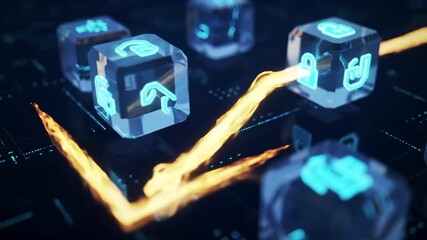 Futuristic Blockchain Concept With Orange Data Flow Videos