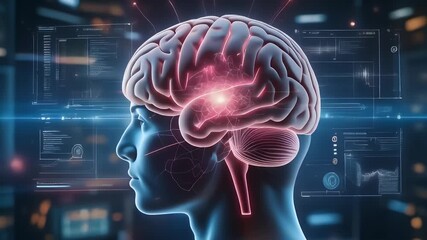 Futuristic Brain Interface With Data And Circuits Visualization Videos