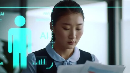 Futuristic Business Office With Financial Data Overlay Videos