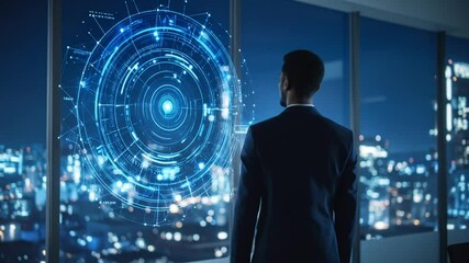 Futuristic Businessman Analyzing Digital Interface Videos