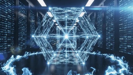 Futuristic Cityscape And Data Streams In Server Room Visual Videos