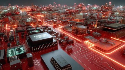 Futuristic Cityscape Merging With Digital Data Visualization Videos