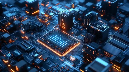 Futuristic Cityscape With Circuit Networking Animation Videos
