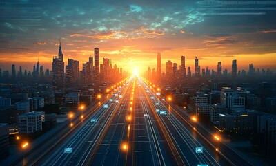 Futuristic Cityscape With Data Overlay And Technology Elements Videos