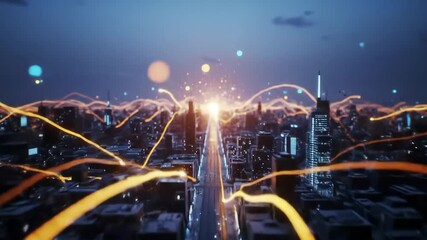 Futuristic Cityscape With Data Streams And Technology Overlay Videos