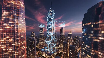 Futuristic Cityscape With Digital Data Overlay Animation Videos