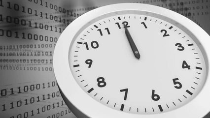 Futuristic Clock Over Binary Code Symbolizing Fast Data Processing Videos