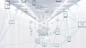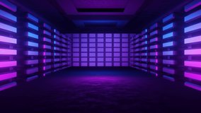 Futuristic Computer Server Room With Star Icons Overlay Videos