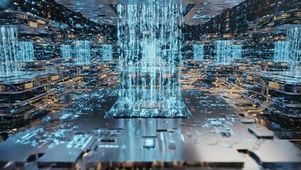 Futuristic Cyber Data Processing Concept With Cityscape Videos