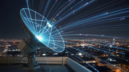 Futuristic Cyber Data Streams Over Night Cityscape Videos