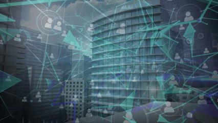 Futuristic Cyber Data Streams Over Night Cityscape Videos