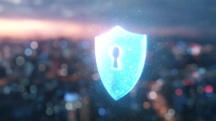 Futuristic Cybersecurity Animation Over Cityscape Videos