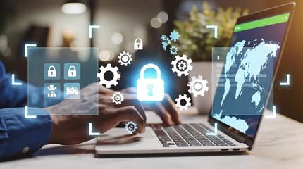 Futuristic Cybersecurity Interface With Digital Padlock Graphic Videos