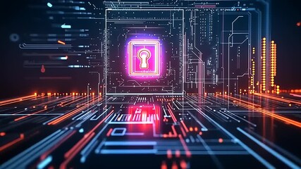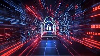 Futuristic Cybersecurity Lock With Data Streams Videos