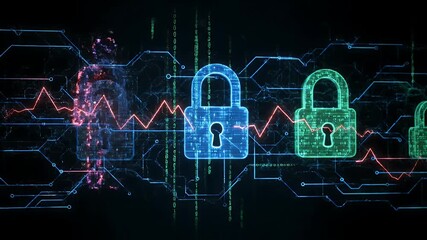 Futuristic Cybersecurity Padlock Animated On Digital Network Videos